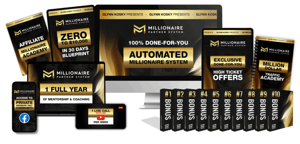 Renowned in digital marketing for developing various tools and educational programs, Glynn created the Millionaire Partner System. This program is a comprehensive and easy-to-follow strategy for anyone looking to make money online, being ideal for people without advanced technical knowledge or prior experience.
